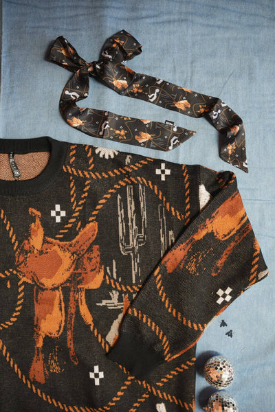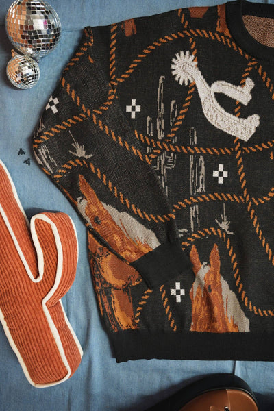 Meet our Tacky Knit Sweater, a piece that's more than just a trend. It's a hand-drawn, original design that you'll want to keep for generations. This knit sweater is part of our women's apparel line.