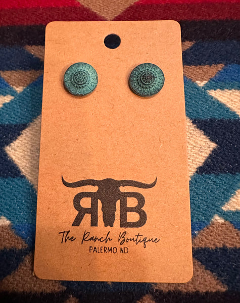 - Post back - Lead & nickle compliant - Color: burnished silver and copper/ patina turquoise