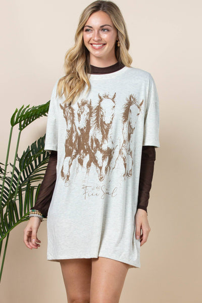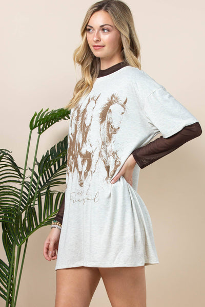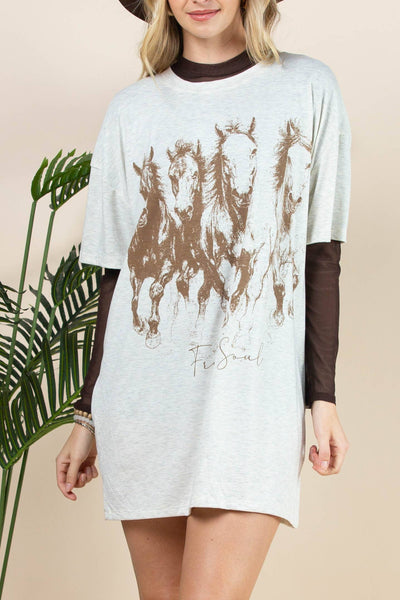 Galloping Horses Graphic Short Sleeve T-shirt Dress