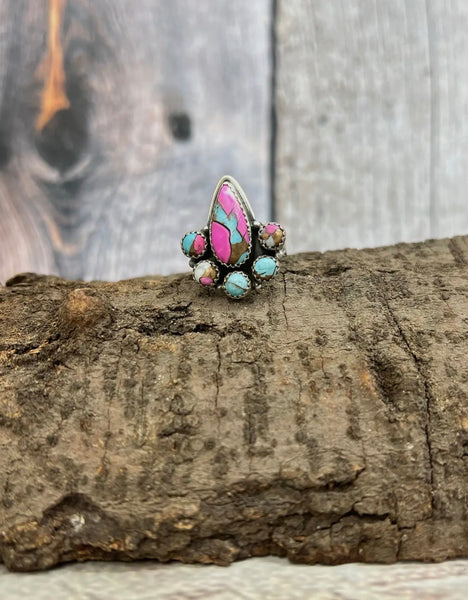 Introducing our latest masterpiece! This stunning Sterling Silver Cotton Candy Turquoise adjustable ring is a true showstopper. With dimensions of 1" in length and 7/8" in width, it's designed to make a bold statement.